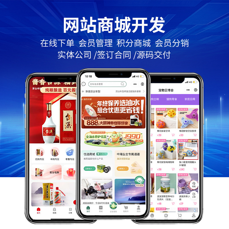 • 微商城建设企业三合一购物网站制作公众号开发手机PC系统平台搭建
